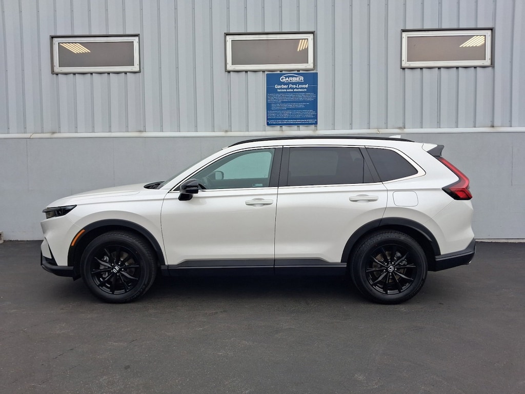 Elevate your driving experience with this stunning 2025 Honda CR-V Hybrid Sport-L. Boasting a sleek white exterior, this certified pre-owned SUV combines exceptional fuel efficiency, advanced technology, and uncompromising Honda quality.